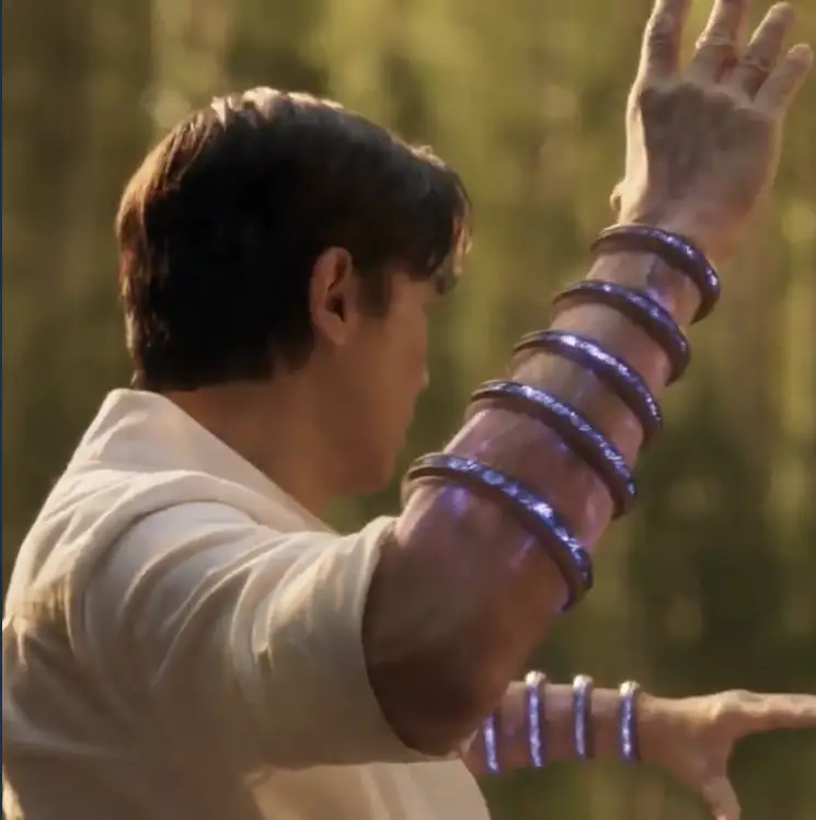The other seriously revelatory footage delivered by this clip is seeing the tituar Ten Rings in action! It looks as though these powerful artifacts rest upon the arms before being projected outwards once activated.